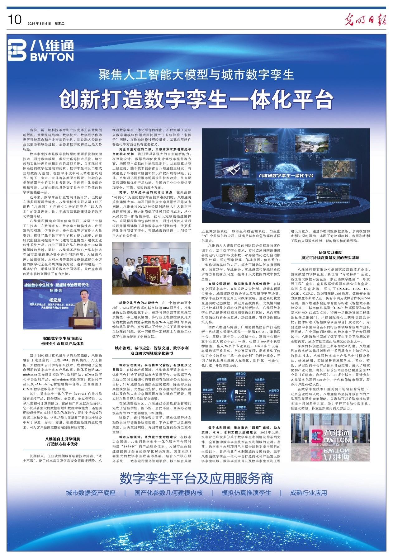 《光明日報(bào)》整版聚焦!八維通創(chuàng)新打造數(shù)字孿生一體化平臺(tái)